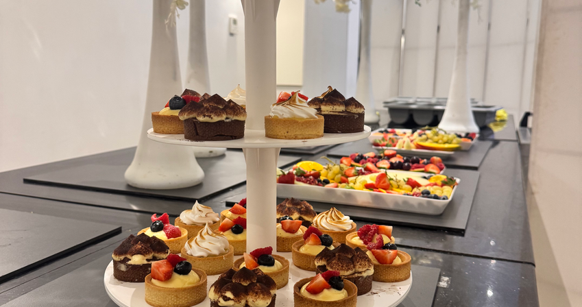 Trasforma il tuo evento con un tavolo dei dolci visivamente sbalorditivo, con torte, crostate e pasticcini personalizzati, tutti realizzati per stupire e soddisfare i tuoi ospiti.